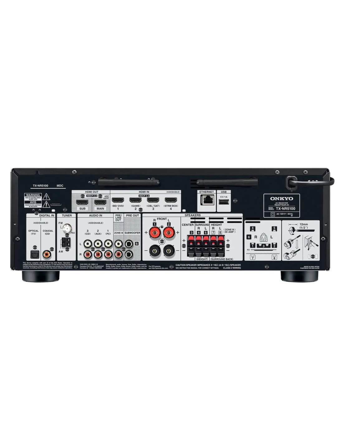 Onkyo TX-NR5100 to 5.2.2-kanałowy amplituner kina domowego, wyposażony w najnowsze technologie HDMI 2.1 i 8K, dekoduje dźwięk zapisany wielokanałowy z podłączonych do niego źródeł zewnętrznych a wysokiej jakości obraz przekazuje do zgodnego z nimi telewizora lub projektora. Ulepszenia HDMI eliminują opóźnienia, zapewniając płynną, wolną od opóźnień rozgrywkę. Dzięki dyskretnym, wysokiej wydajności wzmacniaczom, wytwarzającym 160W na kanał ścieżki dźwiękowe Dolby Atmos i DTS:X są odtwarzane z ekscytującą dynamiką. Inteligentne funkcje amplitunera oferują szeroki wybór usług przesyłania strumieniowego i stanowią serce bezprzewodowego systemu audio.