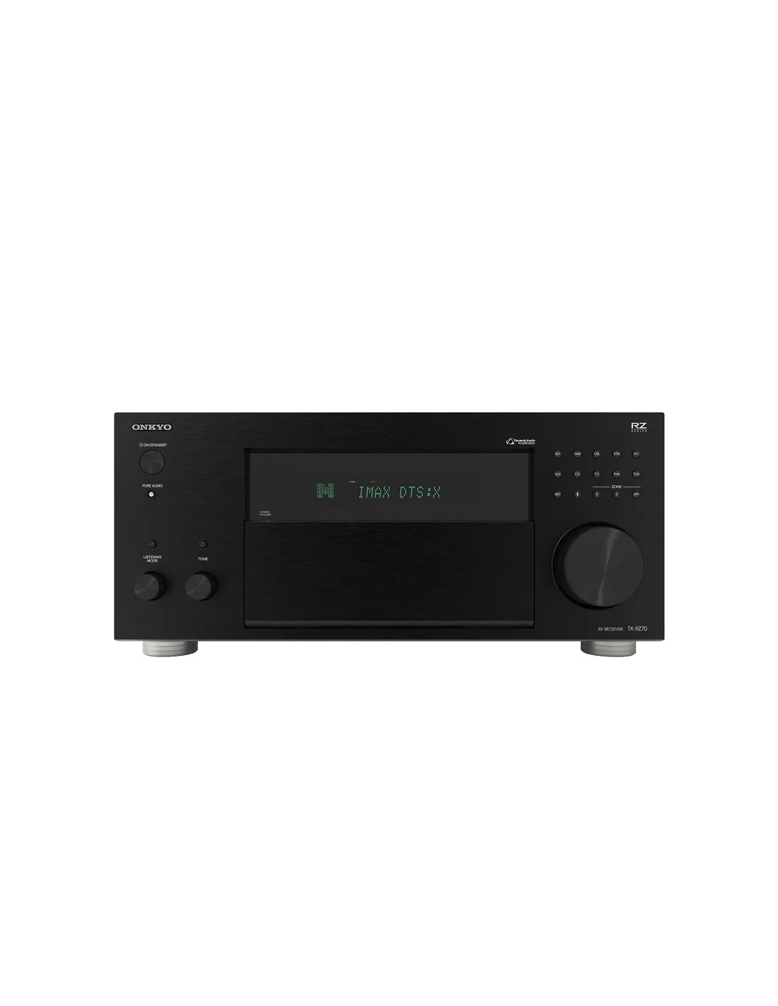 Onkyo TX-RZ70 to 11.2-kanałowy amplituner kina domowego z certyfikatem THX posiada 7 wejść i 3 wyjścia HDMI 2.1 z eAR, zapewnia niezwykle czysty dźwięk, znakomite efekty wizualne i najnowsze technologie, które pozwolą rozsmakować się w Twoim domowym zaciszu bezkompromisową reprodukcją audio/wideo w wysokiej rozdzielczości co pozwili cieszyć się filmami, muzyką i grami dokładnie tak, jak zamierzyli ich twórcy. Wykorzystując najnowszą technologię audio, w tym przetworniki cyfrowo-analogowe ESS Sabre, certyfikat THX, Dolby Atmos, TX-RZ70 zapewnia najwyższą wydajność kina domowego. Urządzenie zapewnia ogromną moc 140W na kanał, aby podkreślić każdy niuans muzyki, filmów i gier. Bezprzewodowa transmisja sygnału audio może odbywać się poprzez Apple AirPlay 2, Bluetooth i Wi-Fi.