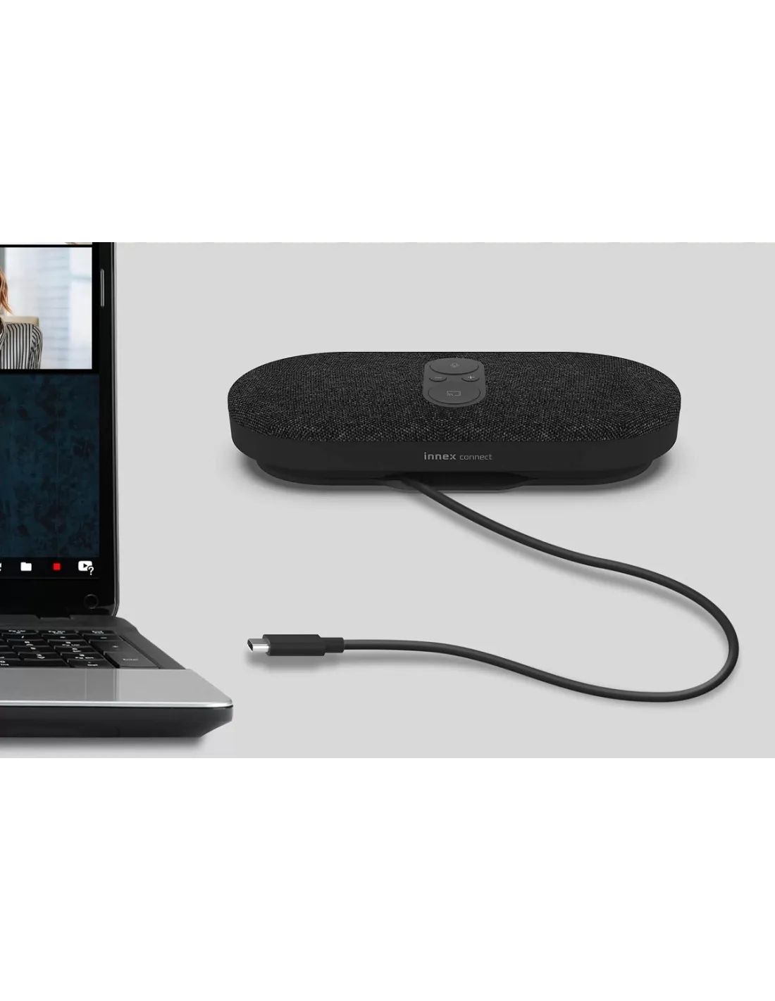 Uzyskaj szybki i bezpieczny dostęp do spotkań za pomocą własnego urządzenia! Innex Connect oferuje pełną obsługę BYOM (Bring Your Own Meeting), umożliwiając łatwe podłączenie laptopa z systemem Windows lub Mac do zestawu głośnomówiącego za pomocą jednego kabla oraz bezprzewodowe udostępnianie ekranu i dostęp do kamery konferencyjnej.