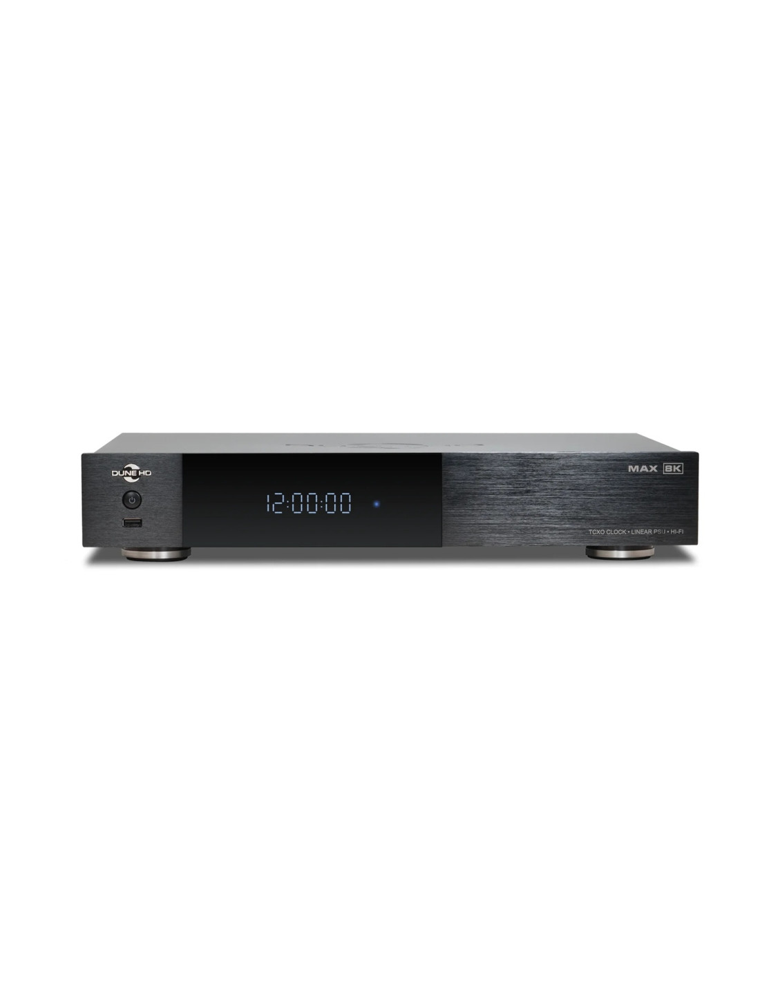 Dune HD Max 8K to flagowy odtwarzacz multimedialny zaprojektowany do bezkompromisowego kina domowego. Obsługuje materiały 8K i 4K UHD, Dolby Vision, HDR10+ oraz zaawansowane formaty audio, w tym Dolby Atmos i DTS:X, zapewniając najwyższą jakość obrazu i dźwięku. Wydajna platforma sprzętowa gwarantuje płynne odtwarzanie nawet przy bardzo wysokich bitrate’ach. Urządzenie łączy natywny system Dune HD OS z Androidem, przeznaczonym głównie do funkcji dodatkowych – odtwarzacz nie jest certyfikowany pod kątem serwisów VOD, dlatego ich działanie i jakość mogą być ograniczone. Solidna, metalowa obudowa, rozbudowane opcje sieciowe oraz szeroki zestaw złączy czynią go idealnym centrum kina domowego klasy premium.