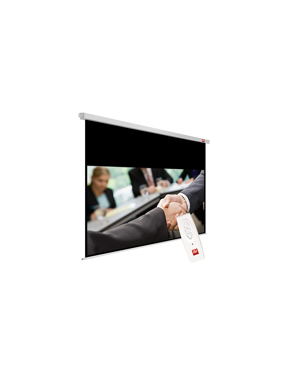 AVTek Business Electric to ekran rozwijany elektrycznie z możliwością montażu na ścianie, lub suficie idealny do biur i sali konferencyjnych.