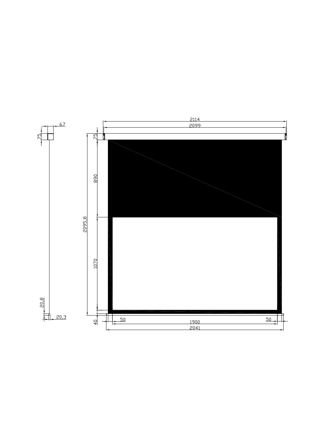 - Czarny TOP – możliwość dopasowania wysokości obrazu do poziomu oczu widza - 89 cm