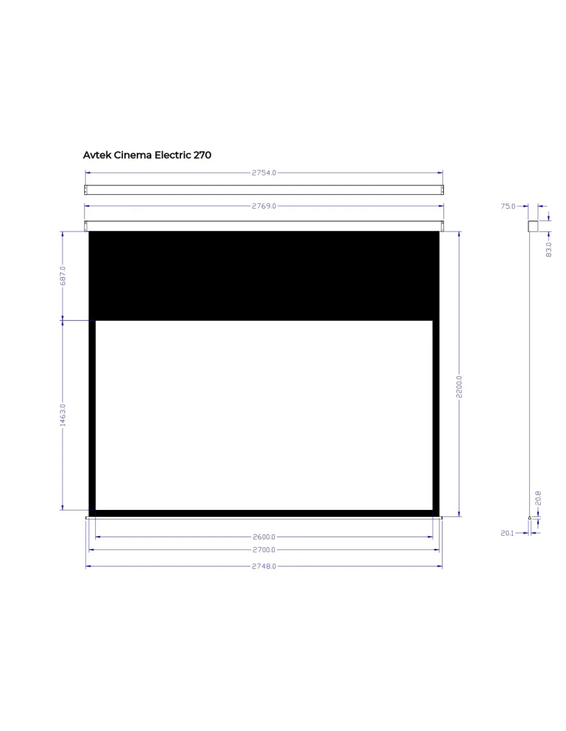 Avtek Cinema Electric 270 to elektryczny ekran projekcyjny z białą powierzchnią Matt White do kina domowego zapewnia duży komfort użytkowania dzięki sterowaniu pilotem.