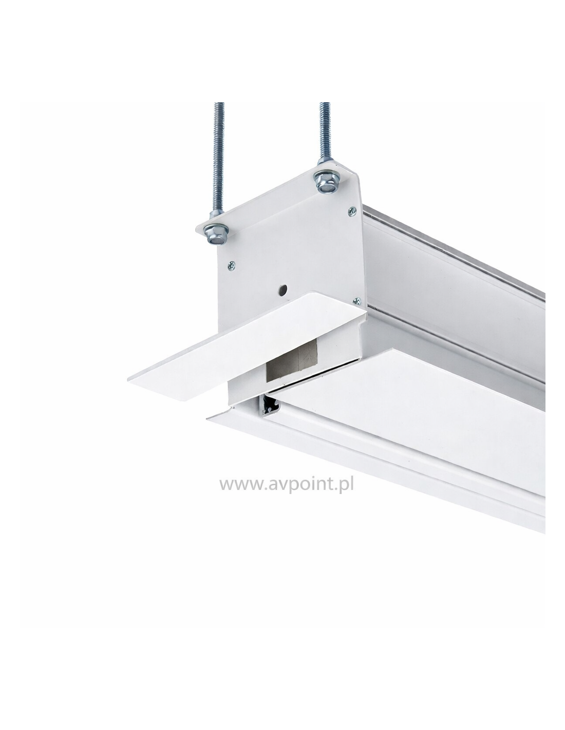 To elektryczny ekran projekcyjny przeznaczony do montażu w zabudowie sufitowej. Konstrukcja umożliwia całkowite ukrycie ekranu w suficie, zachowując estetykę wnętrza, a po opuszczeniu oferuje perfekcyjnie płaską powierzchnię projekcyjną bez widocznych ramek.