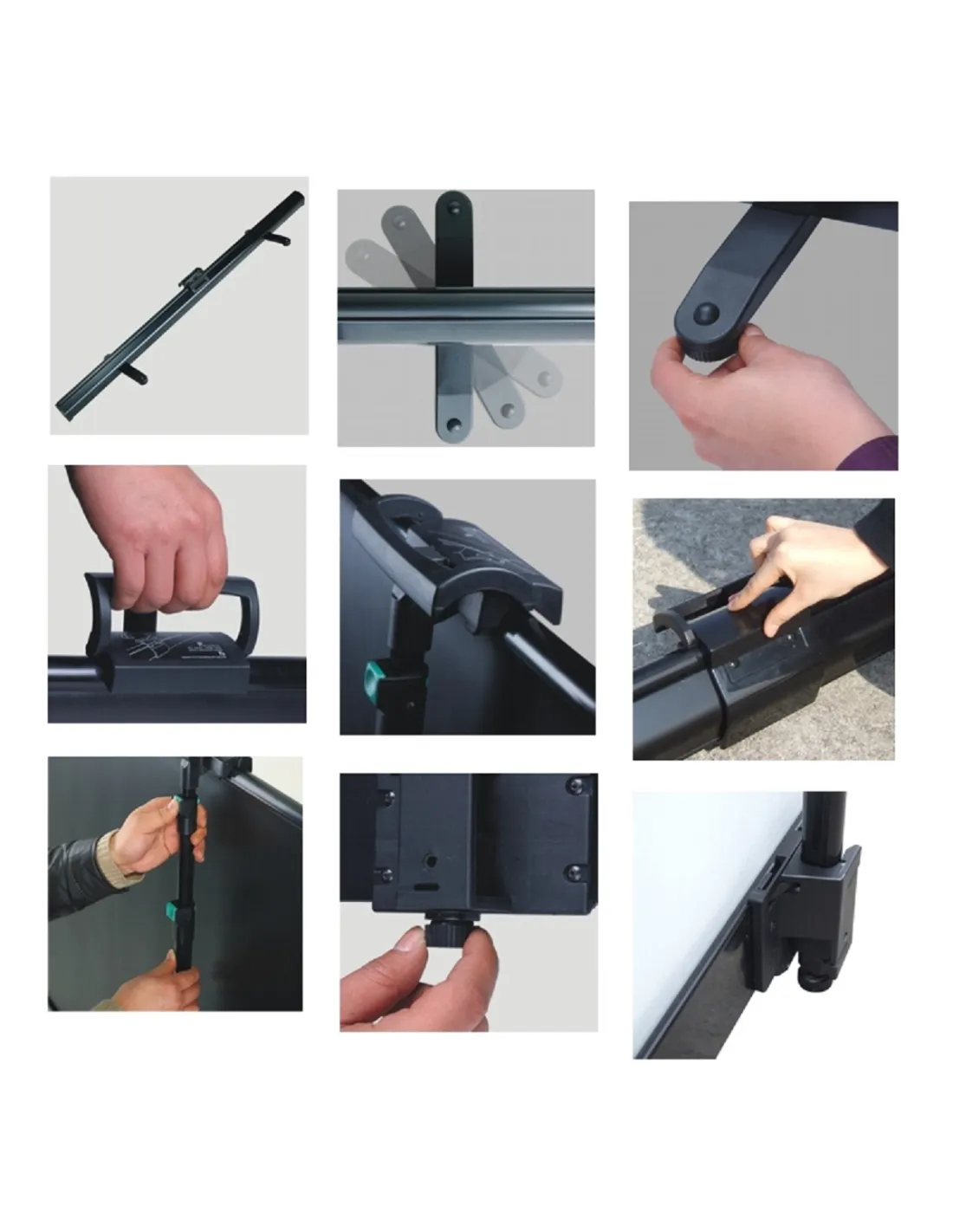 - Specjalna rękojeść z funkcją blokady umożliwia przenoszenie ekranu