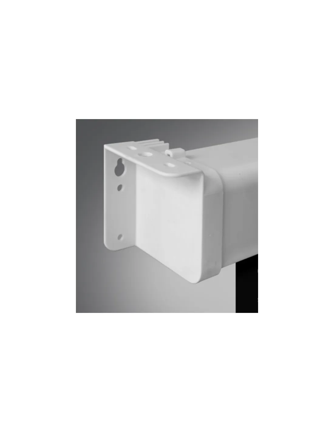 Ekran ręcznie rozwijany z linii ekonomicznej. Modny i smukły profil kasety zakończony jest białymi końcówkami z PVC. System mocowania jest uniwersalny i umożliwia montaż na ścianie lub suficie.