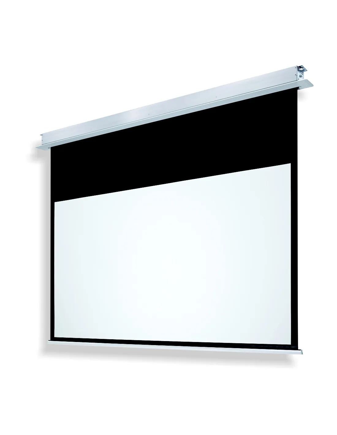 Suprema Polaris Lite to profesjonalny elektryczny ekran projekcyjny w kasecie do zabudowy sufitowej. Ekran po instalacji jest idealnie zlicowany z sufitem podwieszanym lub zabudową g-k. Sterowanie odbywa się poprzez przełącznik na kablu zasilającym. Zasilanie 230V znajduje się z lewej strony kasety ekranu. Do wybory mamy dwie powierzchnie projekcyjne biały Matt White HD, lub szary Matt Grey HD dedykowany do pomieszczeń z jasnymi ścianami.