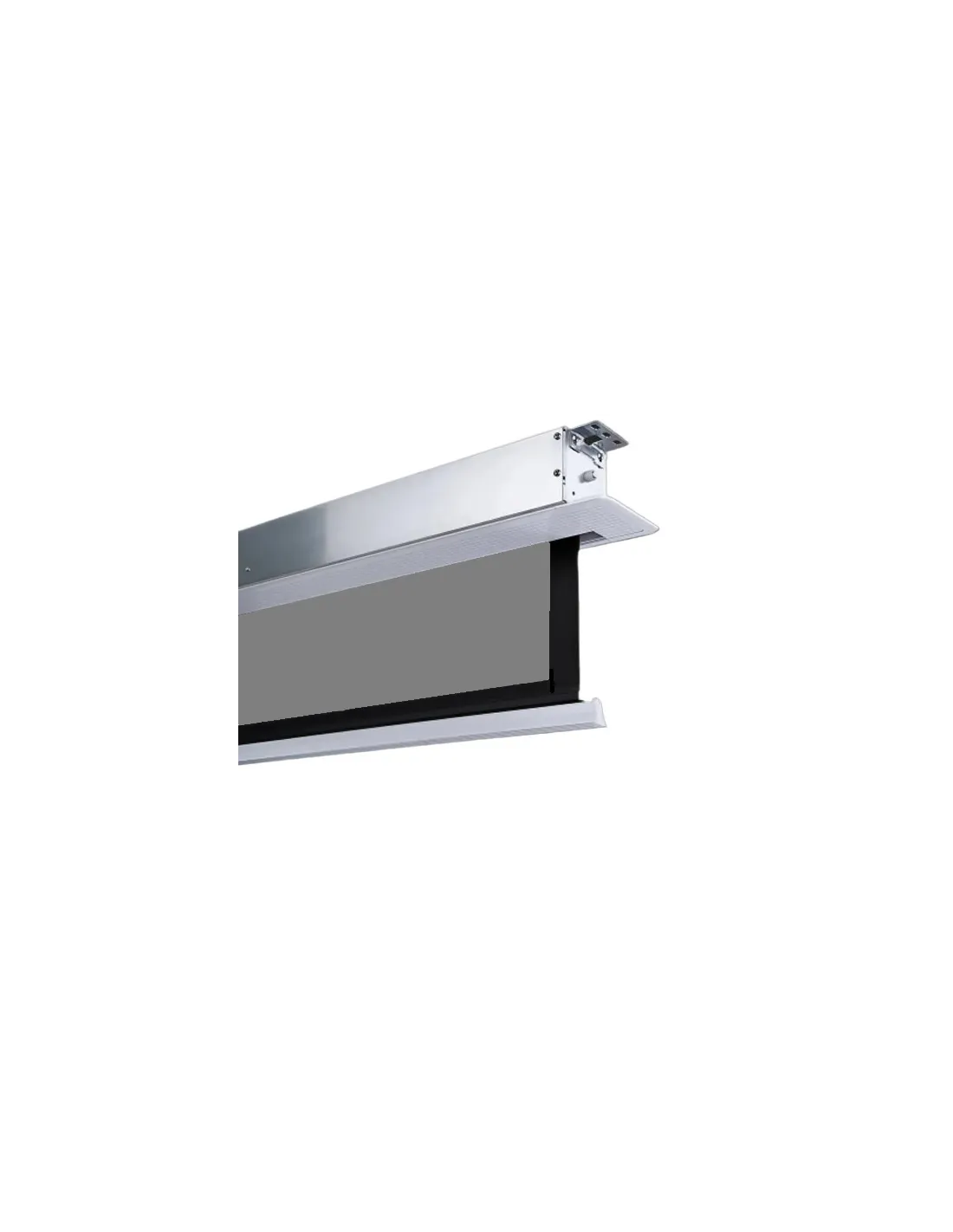 Suprema Polaris Lite to profesjonalny elektryczny ekran projekcyjny w kasecie do zabudowy sufitowej. Ekran po instalacji jest idealnie zlicowany z sufitem podwieszanym lub zabudową g-k. Sterowanie odbywa się poprzez przełącznik na kablu zasilającym. Zasilanie 230V znajduje się z lewej strony kasety ekranu. Do wybory mamy dwie powierzchnie projekcyjne szary Matt Grey HD dedykowany do pomieszczeń z jasnymi ścianami oraz standardowy biały Matt White HD.