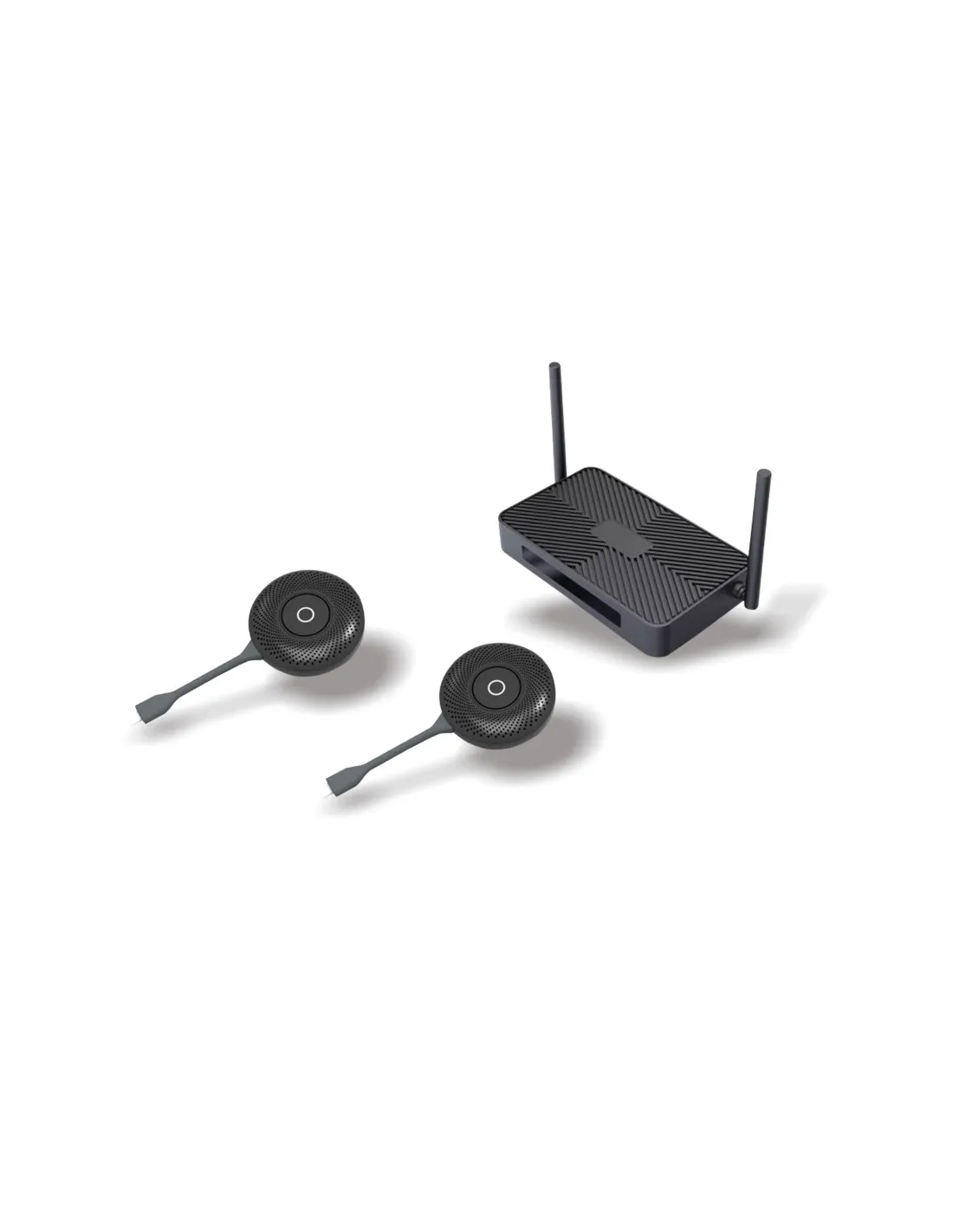 X500 Conference PRO to bezprzewodowy extender HDMI, który pozwala użytkownikowi wygodnie przesyłać obraz z komputera lub odtwarzacza umieszczonego w tym samym pomieszczeniu w biurze lub w domu w odległosći do 50m. Porty USB na odbiorniku pozwalają na podłączenie myszy, klawiatury, ekranu dotykowego, nośnika USB czy nawet kamery USB. Urządzenie działa z systemami Windows, Linux, MacOS, Android i iOS. Obsługiwana rozdzielczość do 4K 30Hz, transmisja point-to-point lub multicast do 4 odbiorników. Plug and Play, nie wymaga sterowników. Odbiornik oparty na procesorze Rockchip (RK3568) posiada wbudowany odtwarzacz plików oraz przeglądarkę internetową, dzięki czemu można na potrzeby prezentacji uruchomić plik multimedialny bezpośrednio z odbiornika lub wyświetlić stronę internetową.