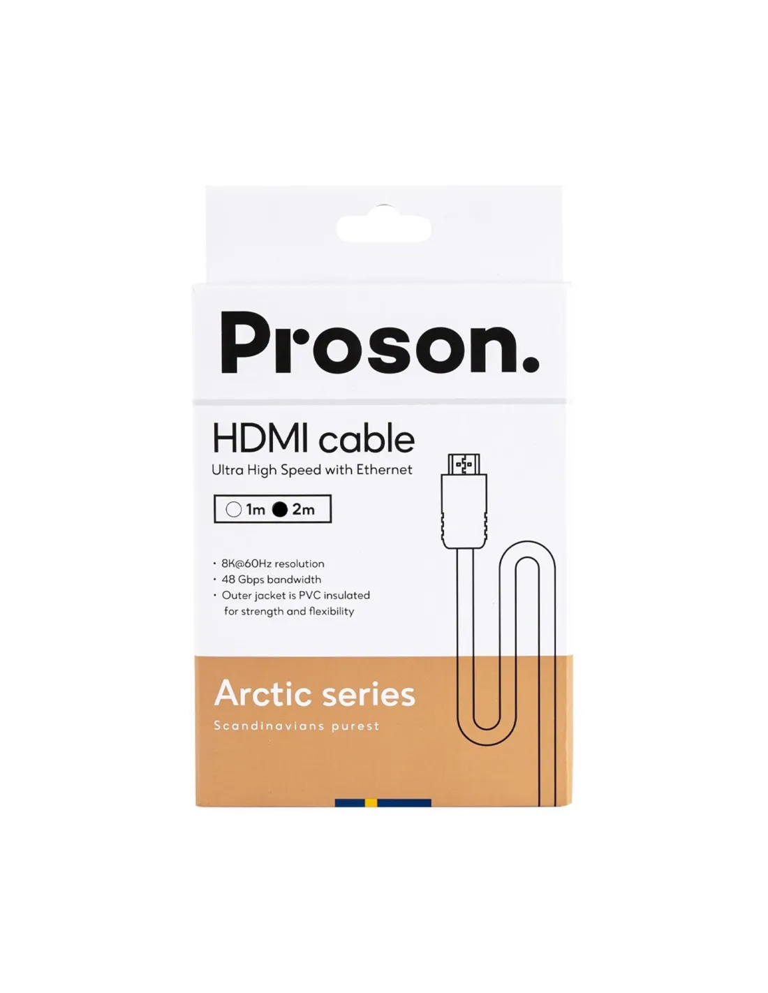 Nowoczesny kabel HDMI z serii Arctic Series o długości 2 metrów od szwedzkiej marki Proson to połączenie stylowego designu i najnowszej technologii. Wykonany w standardzie HDMI 2.1 Ultra High Speed z Ethernet, umożliwia błyskawiczny przesył danych do 48 Gbps oraz pełne wsparcie dla obrazu w jakości 8K przy 60Hz i HDR.