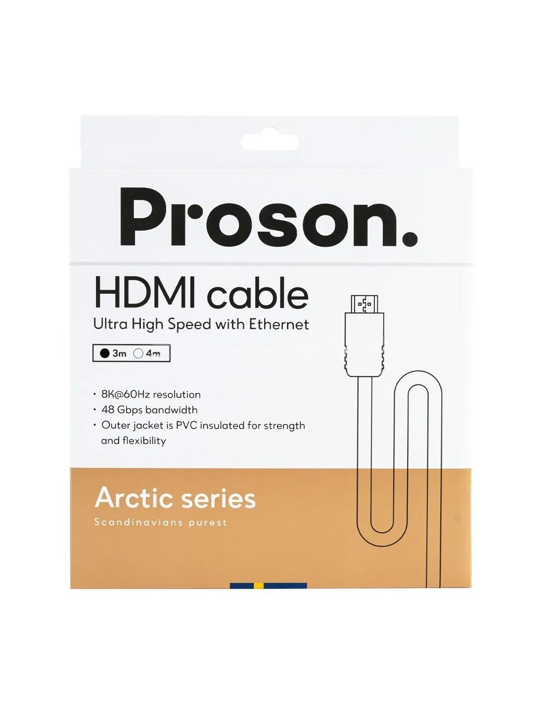 Nowoczesny kabel HDMI z serii Arctic Series o długości 3 metrów od szwedzkiej marki Proson to połączenie stylowego designu i najnowszej technologii. Wykonany w standardzie HDMI 2.1 Ultra High Speed z Ethernet, umożliwia błyskawiczny przesył danych do 48 Gbps oraz pełne wsparcie dla obrazu w jakości 8K przy 60Hz i HDR.