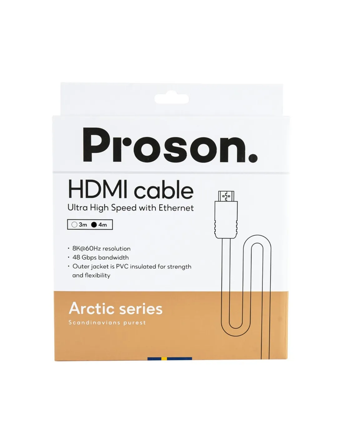 Nowoczesny kabel HDMI z serii Arctic Series o długości 4 metrów od szwedzkiej marki Proson to połączenie stylowego designu i najnowszej technologii. Wykonany w standardzie HDMI 2.1 Ultra High Speed z Ethernet, umożliwia błyskawiczny przesył danych do 48 Gbps oraz pełne wsparcie dla obrazu w jakości 8K przy 60Hz i HDR.