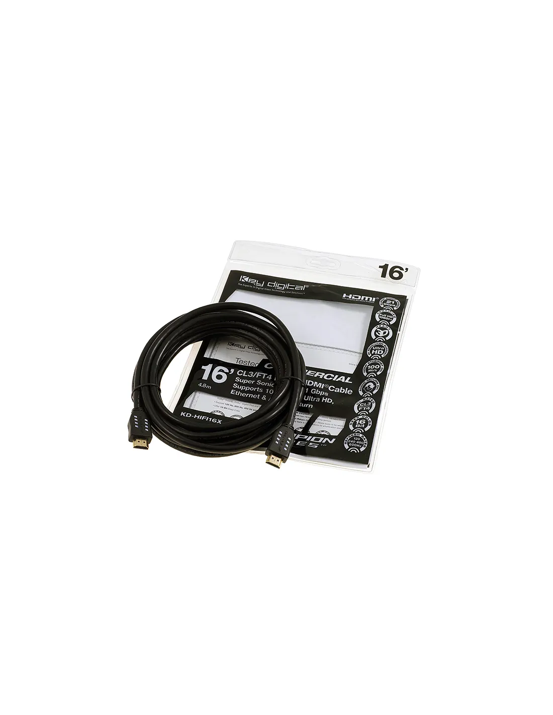 Key Digital jest marką stale poszerzającą swoją ofertę, dlatego my również dbamy o to, aby osoby korzystające z usług AVPoint miały w czym wybierać, jeśli chodzi o artykuły produkowane za oceanem. Wyjątkowo dużym zapotrzebowaniem cieszą się przewody HDMI, takie jak choćby model KD-HIFI09 o długości 2,7 metra. Widniejący w naszej ofercie produkt jest w stanie poradzić sobie bez problemu z obsługą urządzeń gwarantujących rozdzielczość 4096 × 2160 lub 3840 × 2160 pikseli. Proponowany kabel marki Key Digital zapewnia przy tym wsparcie HDR, a także pozbawiony strat transfer cyfrowych systemów audio na czele z Dolby®. Jego grubość natomiast (30 AWG) sprawia, że bardzo trudno jest przerwać go zarówno umyślnie, jak i przypadkowo. Technologia Open EyeTM gwarantuje z kolei brak występowania szumów oraz utrzymuje jakość obrazu na stałym, wysokim poziomie.