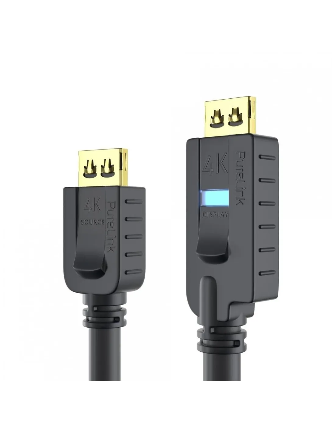 Wtyczka od strony wyświetlacza wyposażona jest we wzmacniacz sygnału PureLink APO™ (Active Performance Optimizer) z wejściem Micro USB, który może być zasilony bezpośrednio przez port HDMI lub za pomocą zewnętrznego zasilania. Zasilanie zewnętrzne może okazać się niezbędne, gdy napięcie na wyjściu HDMI ze źródła jest słabe lub korzystamy z długiego kabla (np. o długości 20m). W większości przypadków kable o długości do 15 metrów zapewniają przepustowość 18Gbps bez konieczności zewnętrznego zasilania; kable 20m należy zewnętrznie zasilić (przy pomocy zewnętrznego zasilacza lub gniazda USB w projektorze lub monitorze). Od 25 metrów przepustowość wynosi 10,2 Gbps.