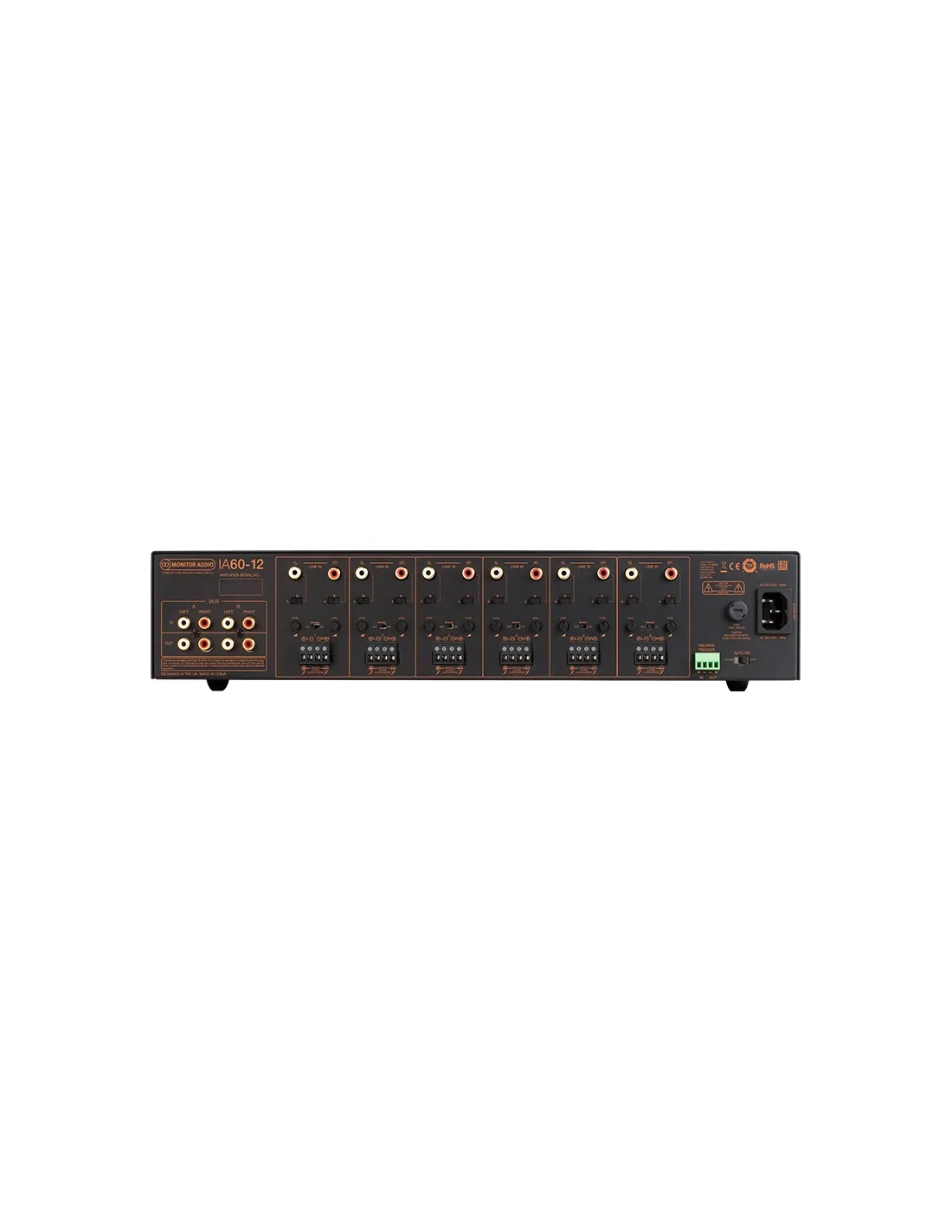 Monitor Audio IA60-12 to instalacyjny wzmacniacz zdolny napędzić do 12 kanałów (6 par stereofonicznych) dając możliwość konfiguracji dla 1, 2, 3, 4, 5, 6, lub 12 kanałów. Dzięki wykorzystaniu w nim modułów wzmacniaczy Hypex gwarantuje wyjątkowe doznania dźwiękowe przekraczające oczekiwania użytkowników.
