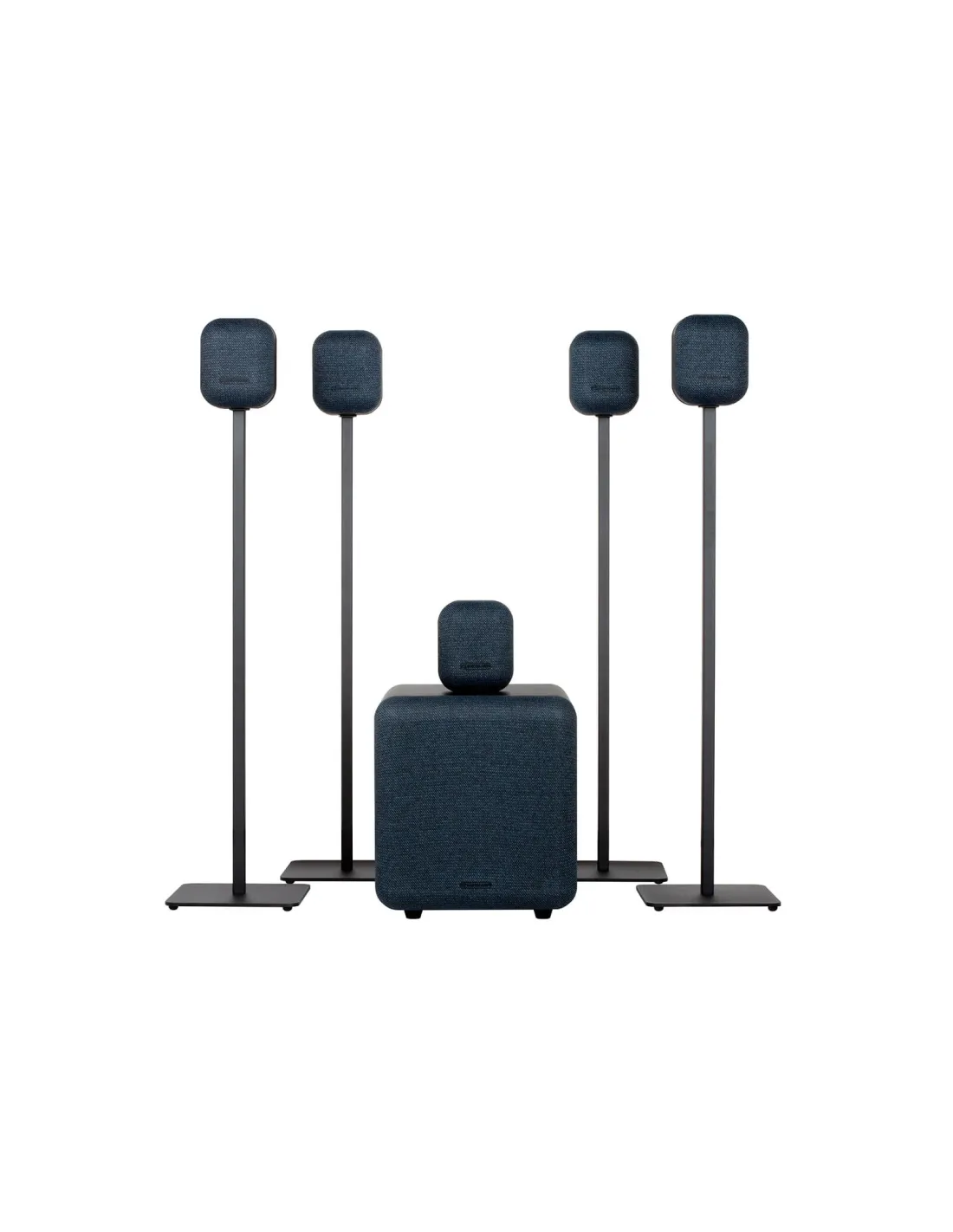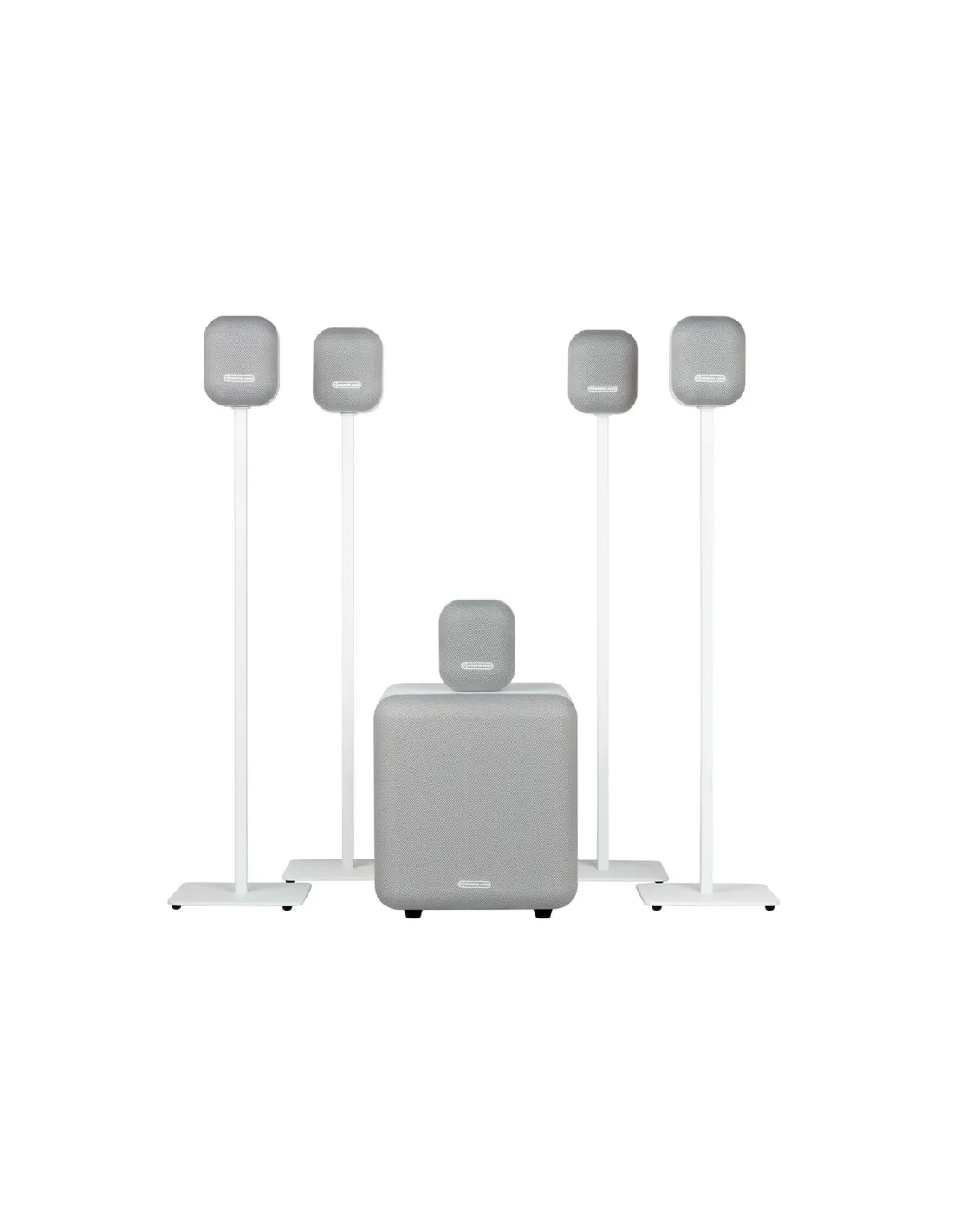 MASS Surround System 5.1 to system głośników do kina domowego, który jest w stanie dostarczać wysokiej klasy dźwięk o dużej skali. Kompaktowe, eleganckie głośniki kryją w sobie wysublimowaną moc i są w stanie wykreować prawdziwie wciągające brzemienia. Stojaki do głośników nie są częścią zestawu, są sprzedawane osobno.