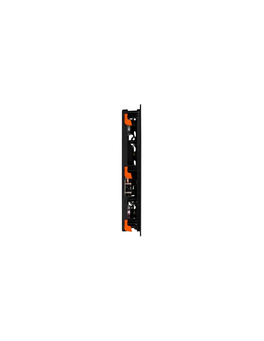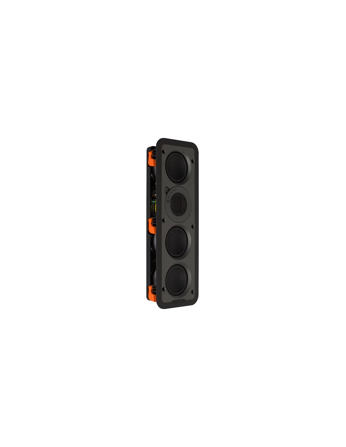 Mimo głębokości zaledwie 50 mm w kolumnach WSS430 sporo się dzieje. Przetwornik wysokotonowy MPD – także z serii Platinum II – to niewiarygodnie niskie zniekształcenia, czyste wysokie tony i pasmo przenoszenia do 50 kHz. Zdejmijmy magnetycznie mocowane maskownice i będziemy mogli przekręcić głośnik wysokotonowy tak, aby uzyskać jak najlepsze rozproszenie dźwięku, kiedy kolumny są zamocowane w poziomie.