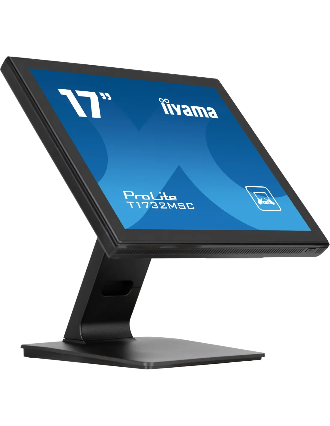 iiyama T1732MSC-B1S to 17-calowy dotykowy monitor wykorzystujący technologię pojemnościową. Powłoka dotykowa zaprojektowana w technologii pojemnościowej gwarantuje doskonałą jakość obrazu, trwałość i odporność na zarysowania. Ewentualne zarysowania nie mają też wpływu na funkcje dotykowe monitora. Monitor spełnia normę IP54, co oznacza, że może pracować w pomieszczeniach o dużym zapyleniu i jest odporny na działania strumieni wody. Monitor wyposażony jest w wejście analogowe VGA, cyfrowe HDMI i DisplayPort. Ponadto posiada wysokiej jakości głośniki stereo. Ekran można zamocować na dowolnym uchwycie zgodnym ze standardem VESA. iiyama T1732MSC-B1S to idealne rozwiązanie do multimedialnych kiosków, punktów sprzedaży i restauracji.
