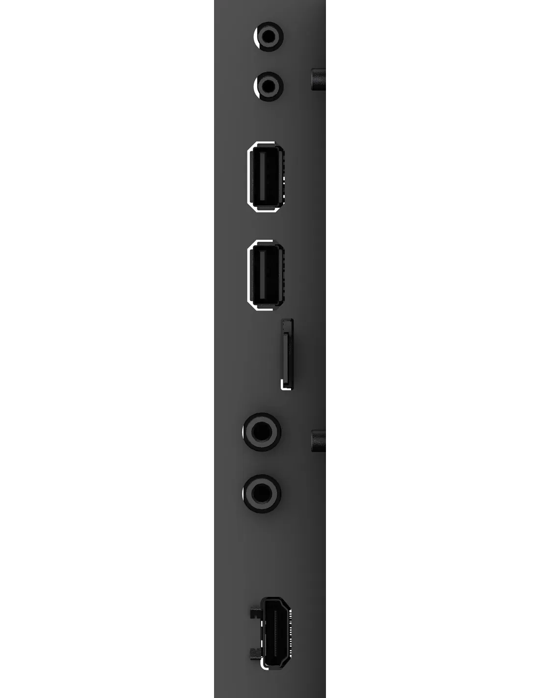 - HDMI x3, RS-232c x1, RJ45 (LAN) x1, IR x1 (3.5mm stereo mini), USB x 2
