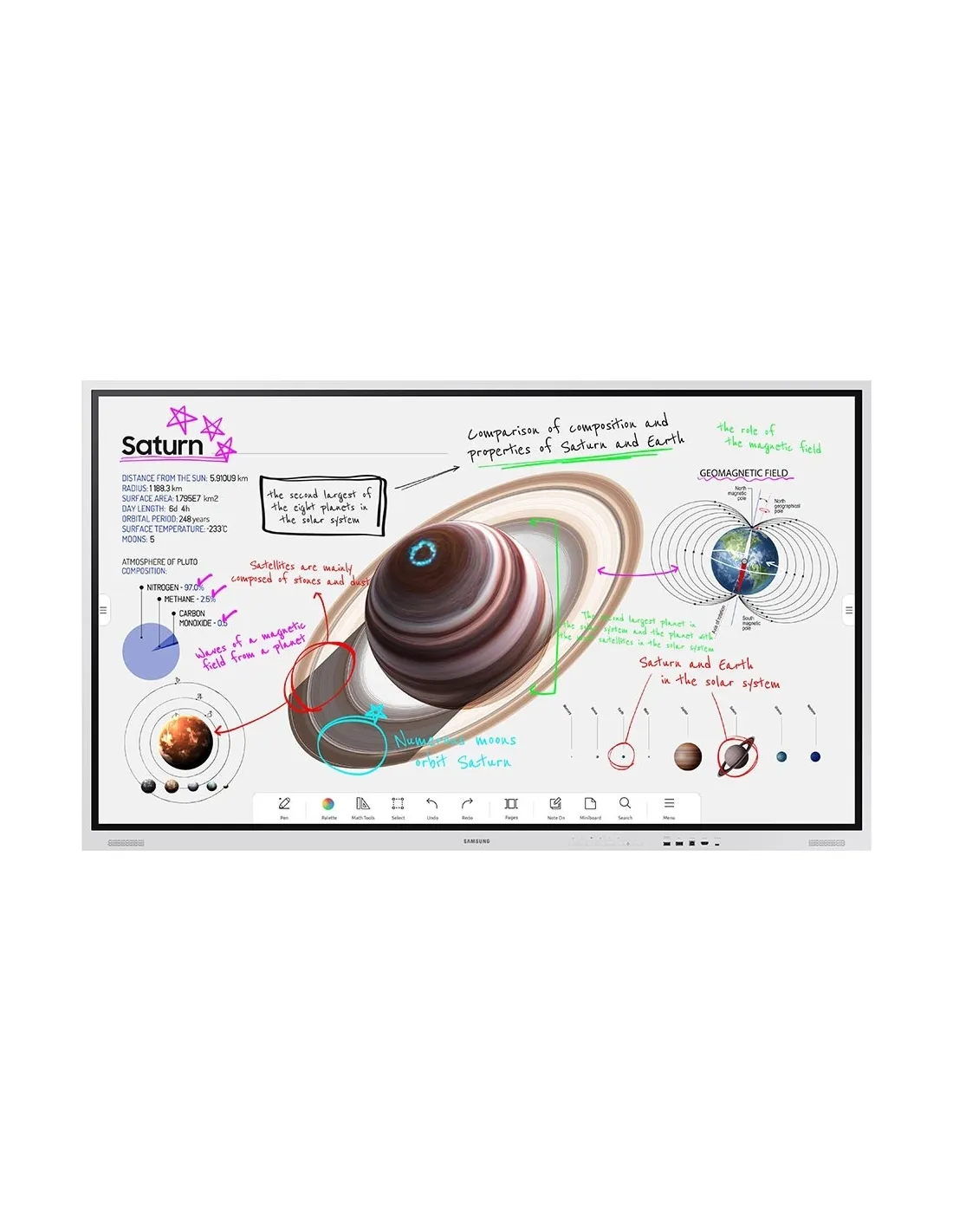 Samsung WM75B Flip PRO to nowoczesny monitor interaktywny o przekątnej 75-cali pracujący w rozdzielczości 4K UHD, został zaprojektowany specjalnie z myślą o edukacji i jest wyposażony przedni panel sterowania o szybkim dostępie. Dzięki wbudowanej powłoce antybakteryjnej ekran dotykowy Flip Pro blokuje rozwój mikroorganizmów, zapewniając bezpieczeństwo użycia. Ponadto panel jest pokryty specjalną powłoką, chroniącą przed rozbiciem a jego elegancki, jasnoszary kolor sprawia, że Flip Pro płynnie wtapia się w otoczenie. Port USB-C 3-w-1 znacząco wzmacnia łączność, co umożliwia korzystanie z funkcji screen-mirroring oraz sterowanie dotykowe i ładowanie urządzeń zewnętrznych. Dzięki temu nauczyciele mogą bez problemu prowadzić interaktywne i wciągające lekcje.