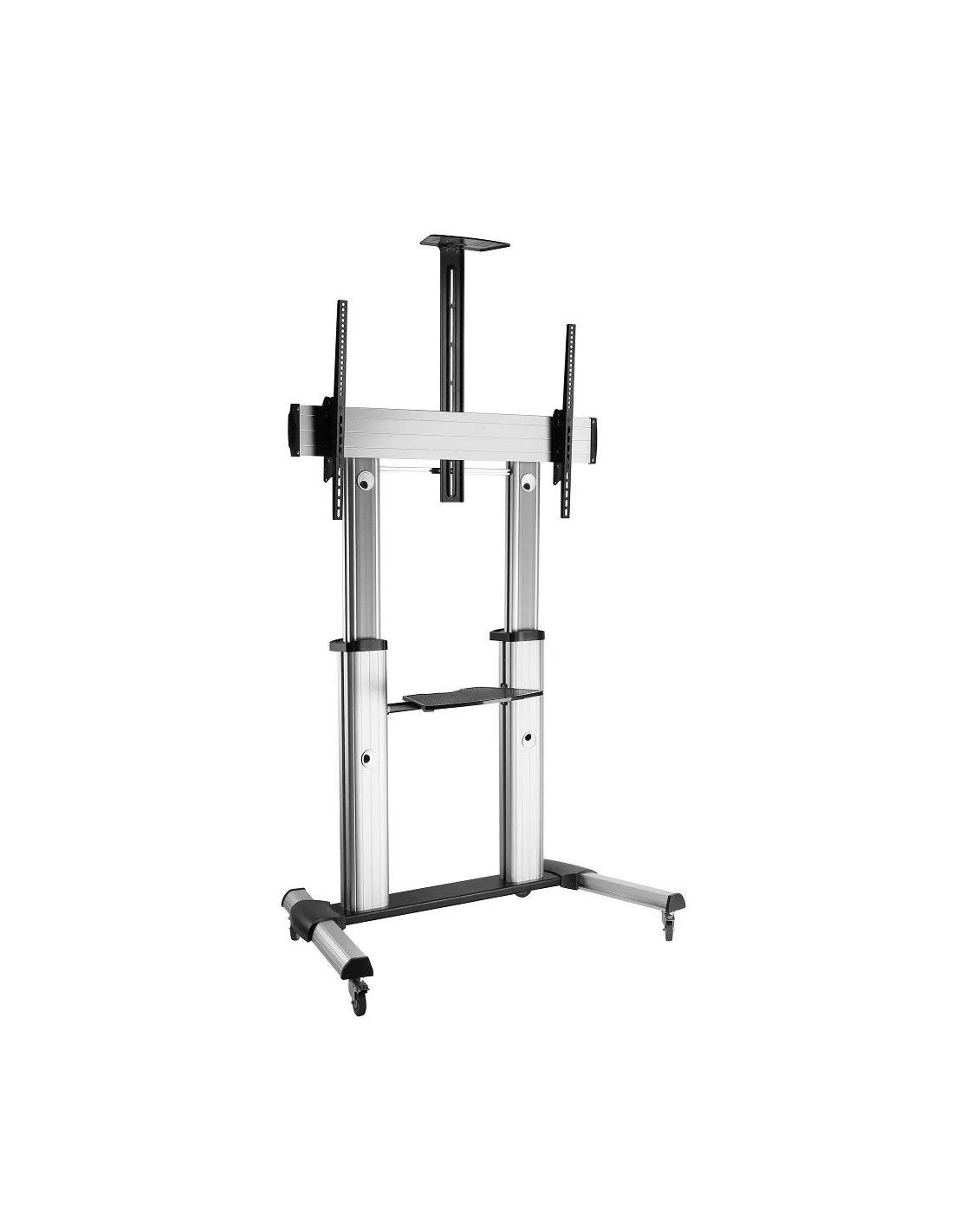 Podstawa jest łatwa w montażu i obsłudze. Dzięki regulacji wysokości można dopasować poziom zawieszenia monitora do swoich potrzeb, a kółka z hamulcem umożliwiają swobodne i bezpieczne przemieszczanie i zatrzymanie podstawy.