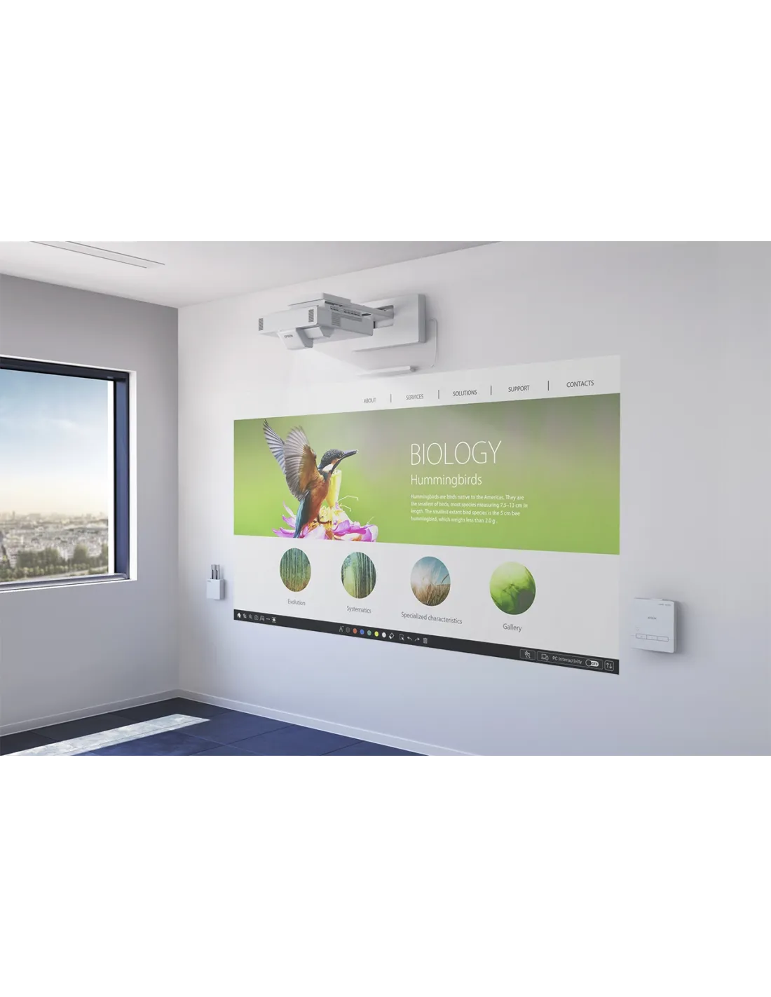 Zapewniaj efektowne prezentacje dzięki wielodotykowemu wyświetlaczowi o przekątnej do 100 cali (16:9 autonomiczny), 120 cali (16:6 autonomiczny) lub 155 cali, korzystając z funkcji Epson DuoLink, która łączy dwa interaktywne wyświetlacze za pomocą wbudowanego edge blendingu (łączenia projekcji).
