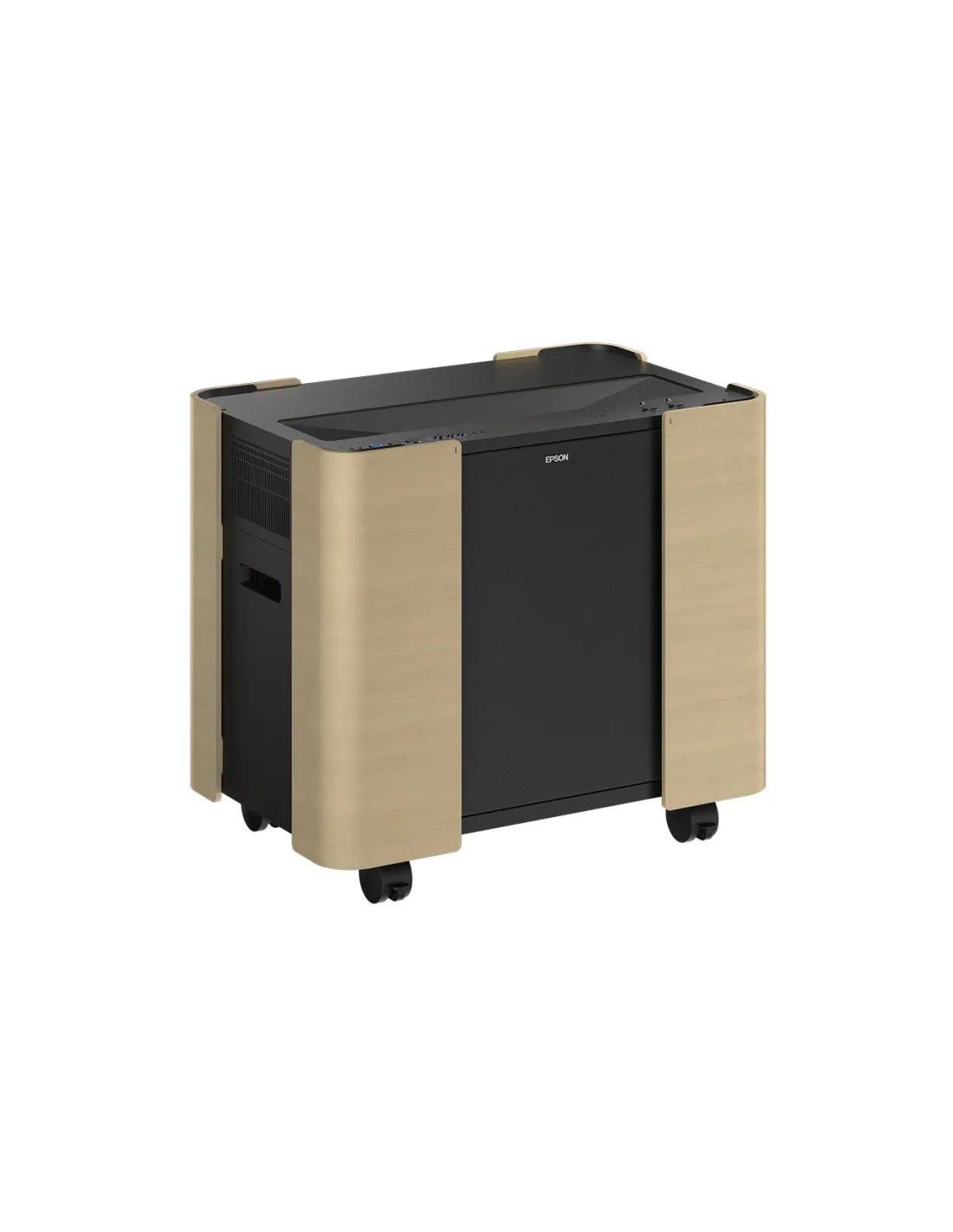 Epson ELPCS01 to nietuzinkowe połączenie mobilnej szafki z zintegrowanym systemem Audio oraz zabudowanym projektorem laserowym o jasności 5000 lumenów o ultra krótkim rzucie Epson EB-810E lub EB-815E, które są zdolne do wyświetlania doskonałej jakości obrazu 4K o przekątnej do 160-cali. Szafka ELPCS01 zawiera zarówno wewnętrzne, jak i zewnętrzne porty HDMI i USB, dzięki czemu urządzenia źródłowe można z łatwością podłączyć za pomocą kabla. Ponadto projektory EB-810E i EB-815E obsługują łączność bezprzewodową przy użyciu technologii Miracast. Dostępna jest również bezpłatna aplikacja Epson iProjection. Jest to idealne rozwiązanie wszędzie gdzie potrzebna jest szybka i wygodna prezentacja to doskonały produkt do Hoteli i sal konferencyjnych, znajdzie też zastosowanie w nowoczesnym nauczaniu.