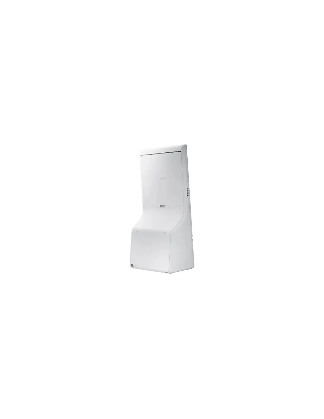 Kiosk Samsung składa się z pojedynczego ekranu i modułu łączącego wraz z opcjonalną podstawą. Design umożliwia estetyczne i wygodne poprowadzenie przewodów, a kremowa biel urządzenia i prostota stojaka sprawiają, że kiosk doskonale wpasuje się w stylistykę każdego sklepu.