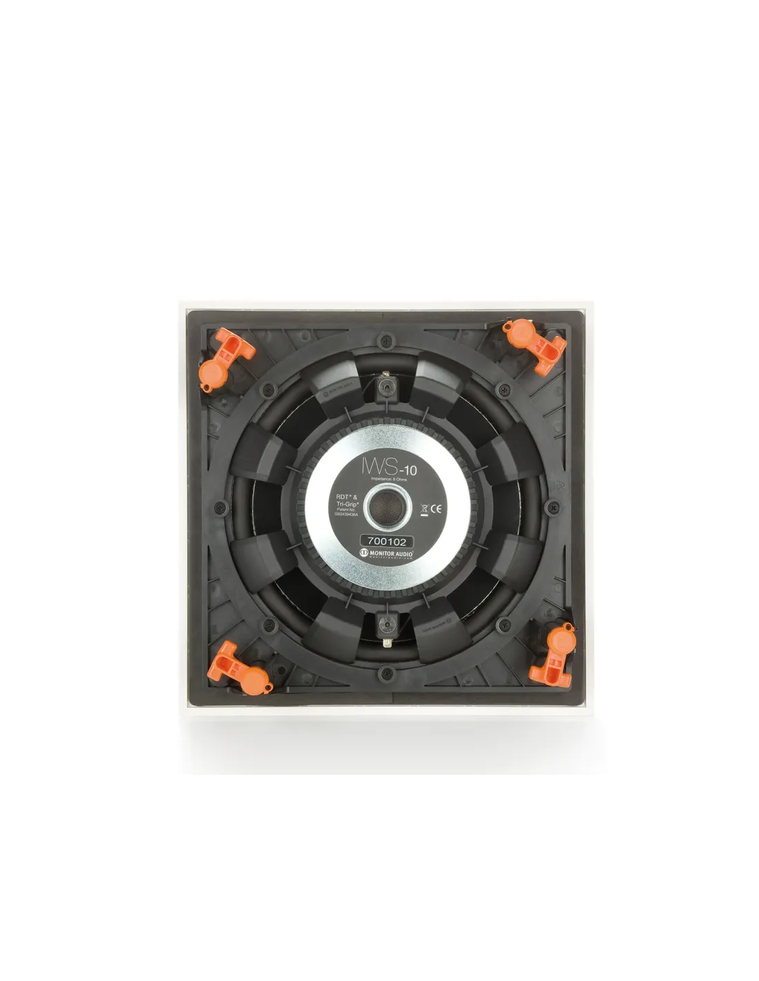 IWS-10 od Monitor Audio to ścienno-sufitowy głośnik subwooferowy wyposażony w opatentowany system mocowań Tri-Grip pozwalający przykręcić głośnik z niespotykaną siłą maskownicę i krawędź ramki można pomalować. Opcjonalnie można kupić obudowę do subwoofera IWS-10 oraz IWA-250 wzmacniacz.