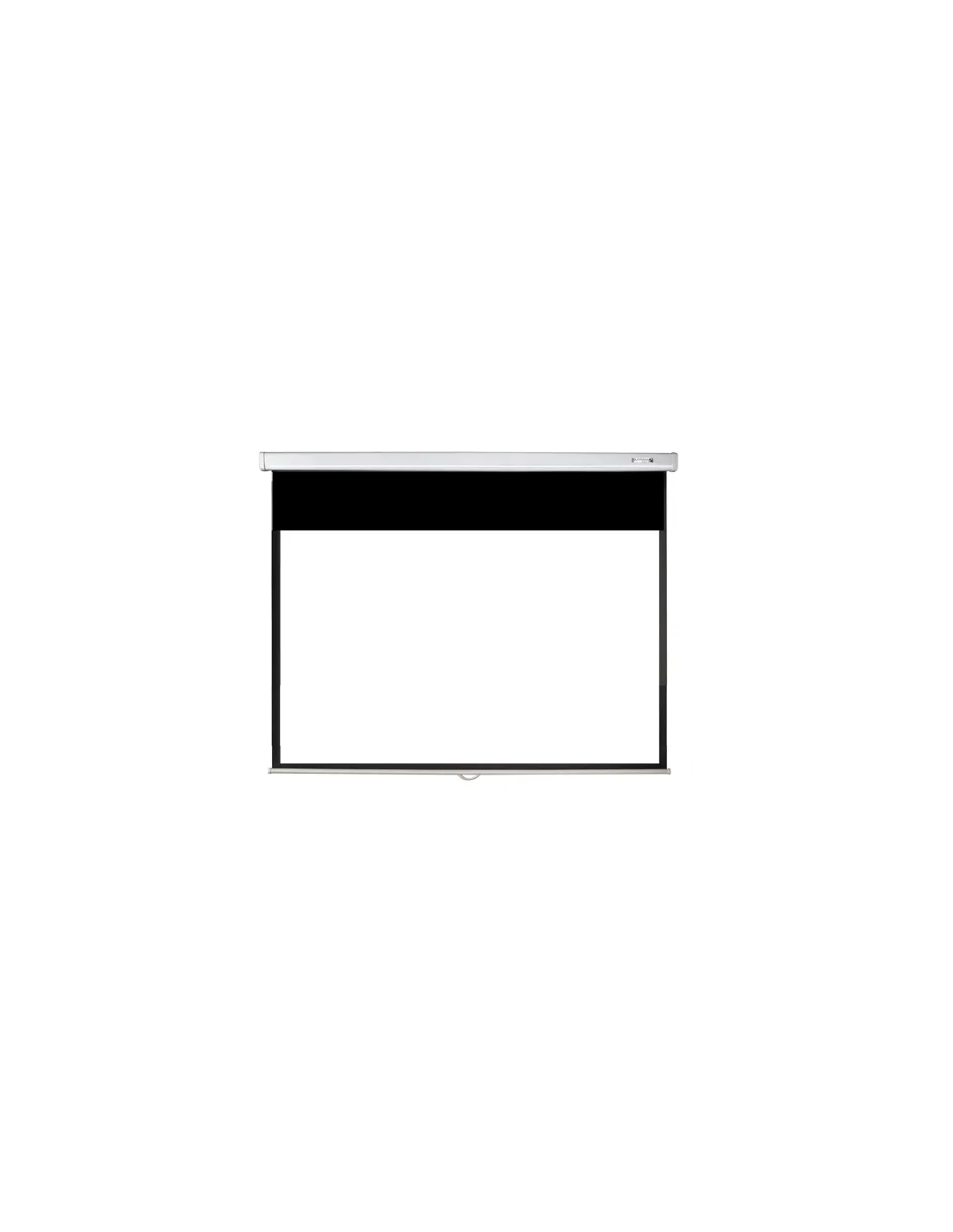 Ekran ręcznie rozwijany z linii ekonomicznej. Modny i smukły profil kasety zakończony jest białymi końcówkami z PVC. System mocowania jest uniwersalny i umożliwia montaż na ścianie lub suficie.