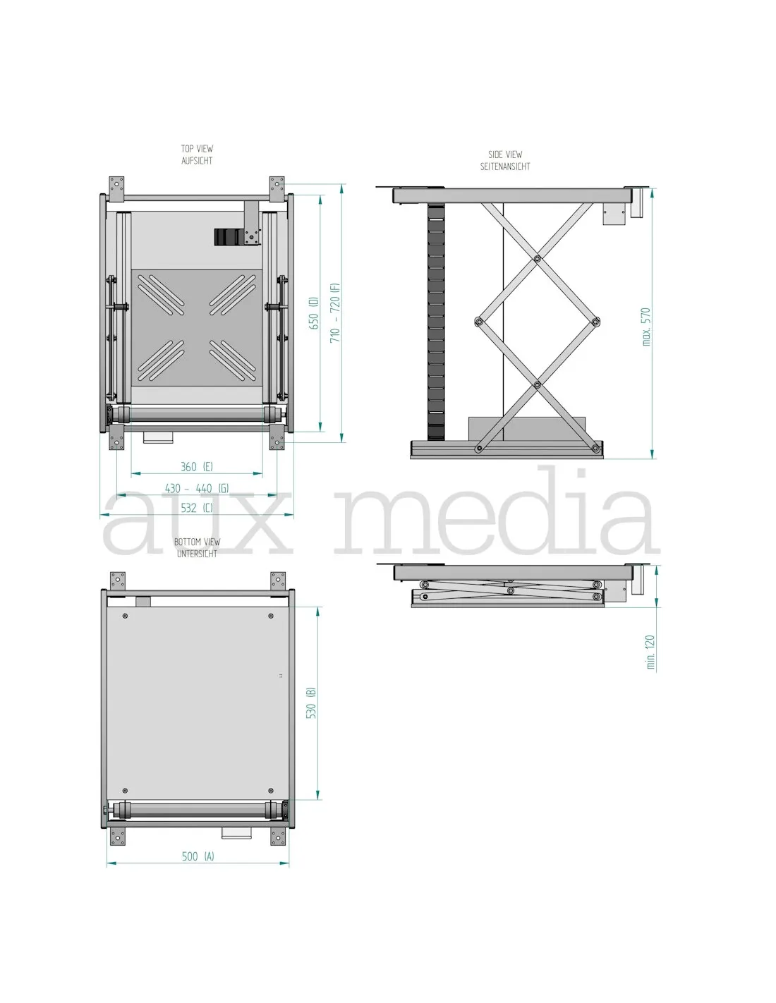 Aux Media to Polska firma specjalizująca się w produkcji wysokiej jakości wind do projektorów. W ofercie znajdują się windy do projektorów o różnych wymiarach, w tym do kinowych dużych modeli. Windy do projektorów Aux Media mogą być wyposażona w pilota. Model Pro Line jest w stanie utrzymać projektor o wadze do 15 kg i szerokości 34 cm z minimalną wysokością zabudowy 12 cm. Ciekawostką jest to, iż można zamontować projektor dołem do góry.