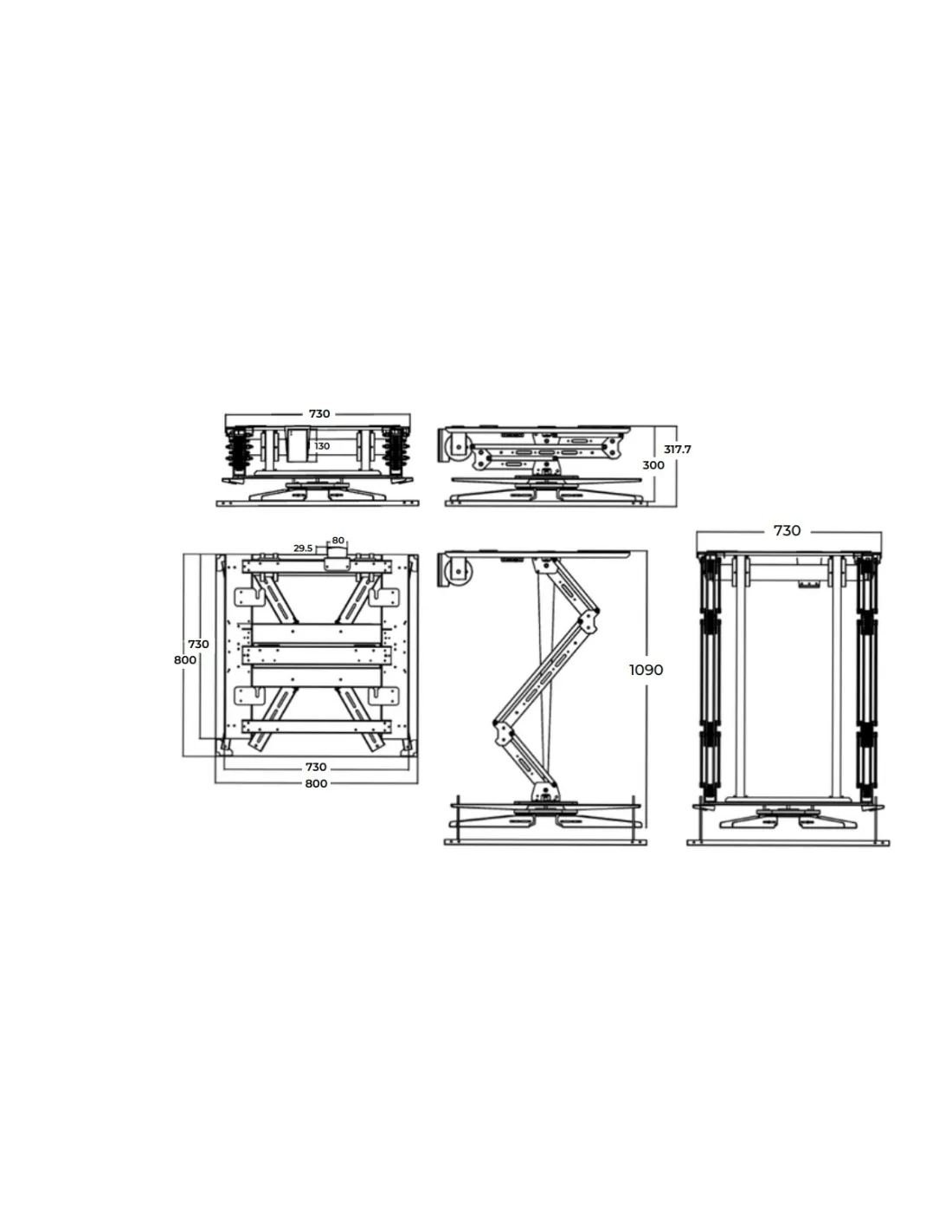 - 730 x 730 x 300 mm